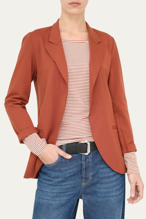 Questa giacca destrutturata nella variante ruggine è un capo smart, pratico e raffinato, ideale per chi cerca uno stile curato ma disinvolto. Realizzata in ottimo cotone punto Milano, accompagna i movimenti con naturalezza. Il design senza chiusura e le linee essenziali valorizzano la figura con sobrietà e modernità. Versatile e sempre attuale, è perfetta per completare tutti gli outfit.