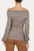 Maglia in viscosa con scollo a barca e maniche bombate con polsino stretto, per un tocco femminile e originale.