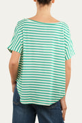 Maglia scollo a barca in cotone maniche corte a righe Florida - Smeraldo