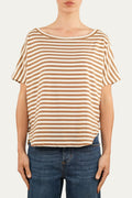 Maglia scollo a barca in cotone maniche corte a righe Florida - Tabacco