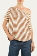 Maglia in cotone con scollo a barca e maniche corte, con un elegante motivo a righe Tabacco, ideale per la stagione estiva. Un capo versatile che dona un look fresco e casual.