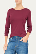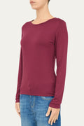 Questa maglia girocollo in morbida viscosa vino avvolge il corpo con una sensazione di leggerezza e comfort, mantenendo una linea semplice e pulita. Il girocollo valorizza il décolleté con naturalezza, mentre la vestibilità dritta la rende perfetta sia da indossare da sola che sotto giacche e cardigan.