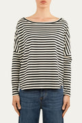 Maglia scollo a barca in cotone a righe Florida - Nero