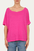 Maglia scollo a barca spalla scesa in Lino - Fucsia