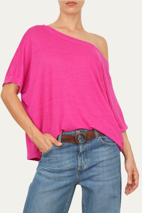 Maglia scollo a barca spalla scesa in Lino - Fucsia