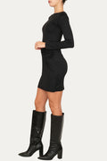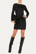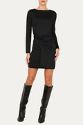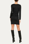 In una tonalità nera profonda e senza tempo, questo tubino esprime eleganza e carattere. Con la sua linea essenziale e il dettaglio intrecciato sul punto vita scolpisce delicatamente la silhouette. Il tessuto morbido ed elasticizzato valorizza le curve senza costringerle, creando un effetto slanciato e sinuoso. Lo scollo girocollo e le maniche lunghe lo rendono un capo versatile, femminile, sofisticato e sicuro di sé.
