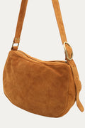Una borsa che unisce stile e praticità. Questa borsa a mezza luna in 100% camoscio è la scelta ideale per il giorno, per l'ufficio o per ogni occasione. La sua forma unica e capiente la rende perfetta per contenere tutto ciò che ti serve, mentre la lunga tracolla a spalla larga e regolabile ti permette di portarla con facilità.