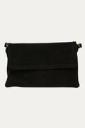 Una pochette che sfata le convenzioni. Questa pochette in camoscio è sorprendentemente ampia e spaziosa, perfetta per contenere tutto ciò che ti serve per una serata fuori. La chiusura a lingua con bottone è elegante e sicura, mentre il laccetto comodo ti permette di portarla a mano o a spalla con facilità.