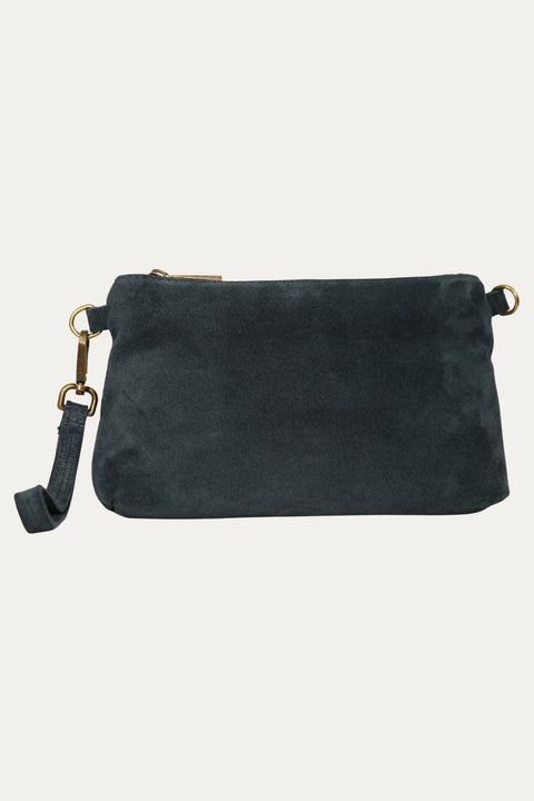 Una pochette minimalista e sofisticata. Questa piccola pochette in 100% camoscio è la scelta ideale per una serata fuori, quando si vuole portare solo l'essenziale. La chiusura a zip è sicura e facile da usare. Dotata di laccetto per portarla a mano o comoda tracolla regolabile.