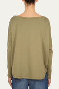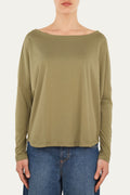 Questa maglia salvia con scollo a barca e linea fluida è un capo versatile, perfetto per chi ama uno stile disinvolto ma curato. Il taglio asimmetrico consente di portarla con una spalla scoperta, per un look moderno e femminile. Realizzata in cotone leggero e traspirante, è ideale in ogni stagione. Minimal ma con carattere, è il capo jolly che completa ogni outfit con semplicità ed eleganza.