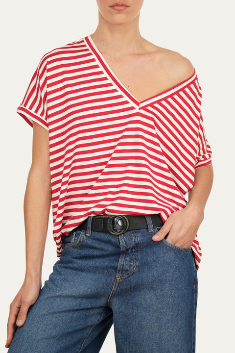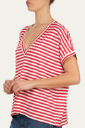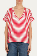 Maglia scollo a V righe Boston Viscosa - Rosso
