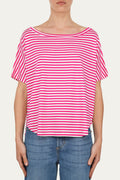 Maglia scollo barca spalla scesa corta righe Florida - Fucsia
