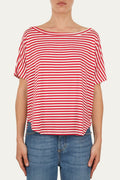 Maglia scollo barca spalla scesa corta righe Florida - Rosso