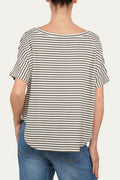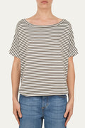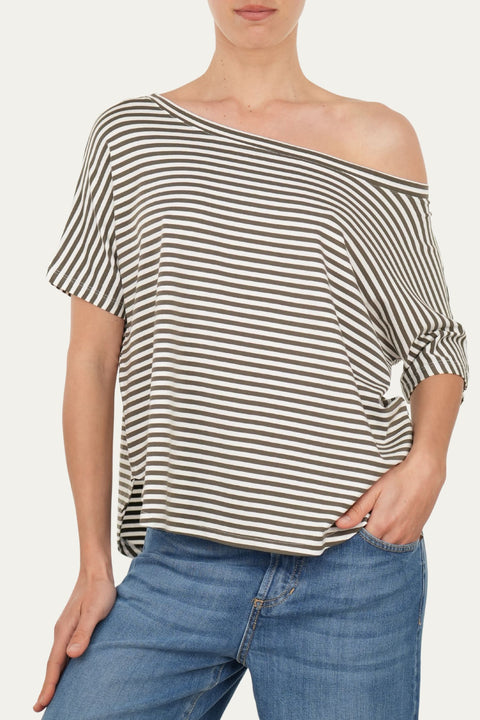 Maglia a maniche corte a righe Salvia, può essere indossata regolarmente o con una spalla scesa che dona un look più sensuale e casual.