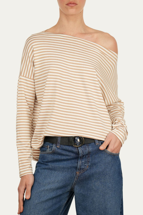 Maglia scollo barca spalla scesa righe Florida Viscosa - Sabbia