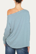 Questa maglia a righe Kansas con scollo a barca, da indossare sia regolarmente che con una spalla scesa per un look più sensuale e casual.