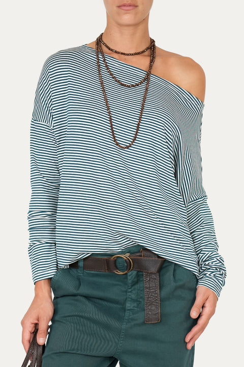 Maglia scollo barca spalla scesa righe Kansas - Ottanio