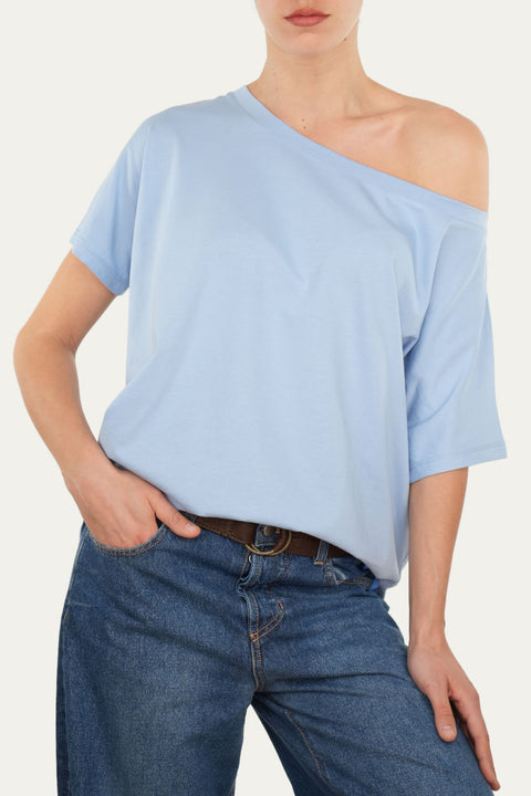 Maglia scollo a barca maniche corte Cotone - Celeste Pastello