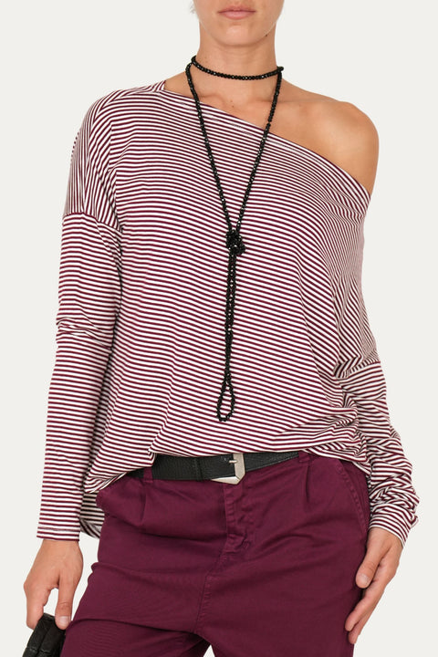 Maglia scollo barca spalla scesa righe Kansas - Vino