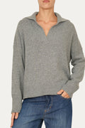 Dettagli: collo polo aperto, maniche lunghe, fondo e polsini a costine