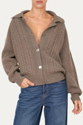 Nel colore noce con le sue sfumature calde e terrose, la maglia polo con bottoni è un capo realizzato in un filato pregiato di lana e cashmere, arricchito da viscosa per garantire morbidezza, comfort e resistenza nel tempo. Il design presenta una lavorazione intrecciata a trecce sul davanti, che conferisce profondità e carattere alla texture, mentre il colletto polo morbido e i grandi bottoni aggiungono un tocco pratico e contemporaneo. Il fondo e i polsini a costine assicurano una perfetta vestibilità e un comfort avvolgente. Puoi indossarla chiusa per un look pulito e sofisticato, semi aperta per un’eleganza rilassata, oppure aperta come cardigan sopra una camicia o una t-shirt per un outfit casual chic.