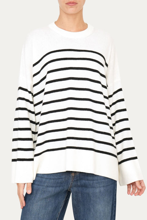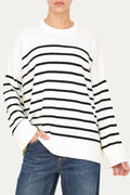 Maglione morbido a righe - Panna/Nero