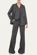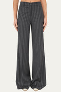 Raffinato e contemporaneo, il pantalone palazzo gessato antracite con lurex è un capo che coniuga eleganza senza tempo e comfort moderno. Realizzato in un pregiato tessuto gessato arricchito da sottili fili di lurex, dona un tocco luminoso e sofisticato al look. La linea fluida scende dritta lungo la gamba, slanciando la figura con naturalezza e regalando una silhouette armoniosa e femminile.