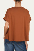 T-shirt a barchetta in morbido cotone Tabacco, taglio svasato e maniche corte con risvolto. Dona un look casual e sbarazzino.
