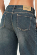 Questo palazzo Dea ha una vita medio-bassa ed è realizzato in tela slegata. Con un design esclusivo e di carattere slancia la silhouette, creando un effetto sinuoso e femminile. Il lavaggio denim thè dona una tonalità avvolgente e naturale, con sfumature delicate che ricordano il colore del thè. Questo lavaggio crea un effetto vissuto e morbido al tatto, la nuance unica lo rende quindi versatile e aggiunge carattere al classico jeans.
