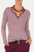 Maglia in morbida viscosa a righe sottili, dal design semplice ma ricercato.