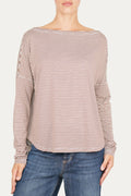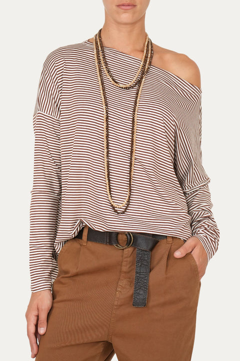 Maglia scollo barca spalla scesa righe Kansas - Moka