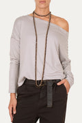 Maglia scollo barca spalla scesa righe Kansas - Taupe