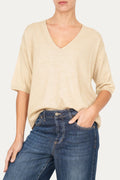 Maglia a scatola manica 3/4 misto cashmere - Grano