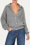 Dettagli: lavorazione intrecciata, colletto polo, bottoni grandi, fondo e polsini a costine