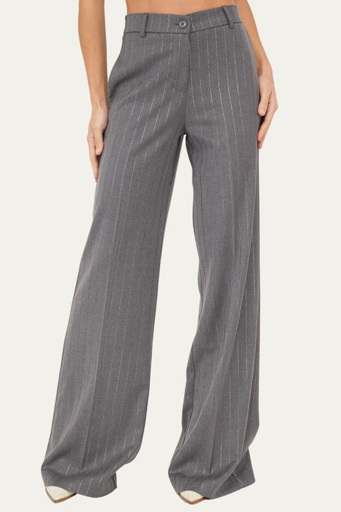 Pantalone palazzo gessato con lurex - Grigio