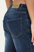 Questo boyfriend nel lavaggio denim blu, variante di colore sempre di tendenza, è un capo pratico e versatile, perfetto per chi cerca uno stile rilassato. Le sfumature realizzate a mano conferiscono profondità al capo, mentre i rivetti metallici aggiungono un tocco grintoso. Realizzato in tessuto comfort, morbido ed elasticizzato.