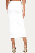 Dettagli: vita regolare con fascia liscia, lunghezza midi, linea pulita senza tasche né cuciture a vista